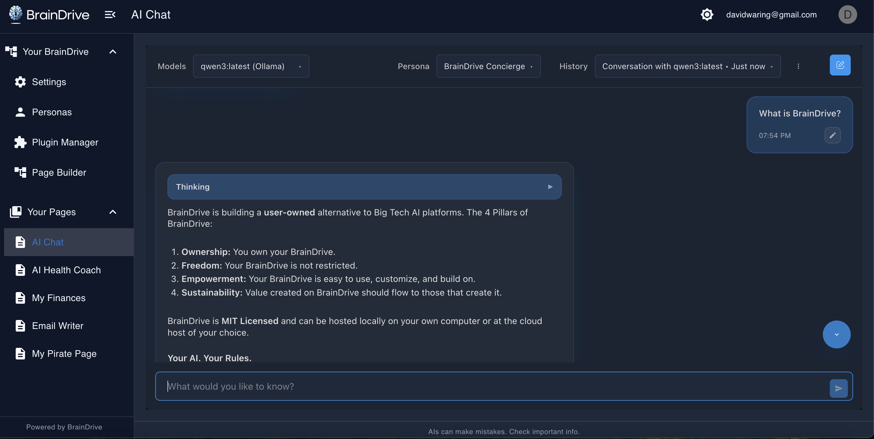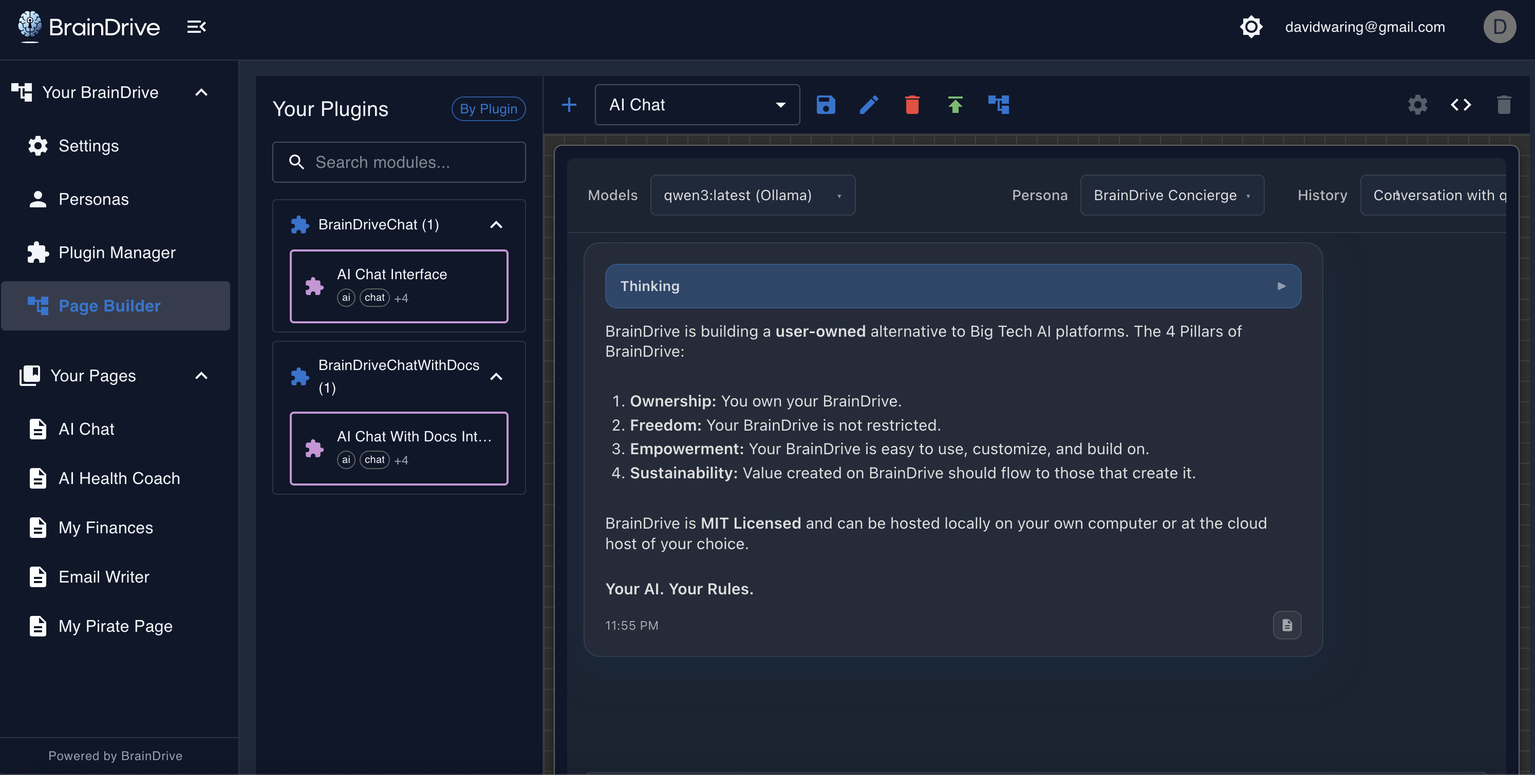 And this is what BrainDrive’s open, modular, plugin based architecture is designed to enable.