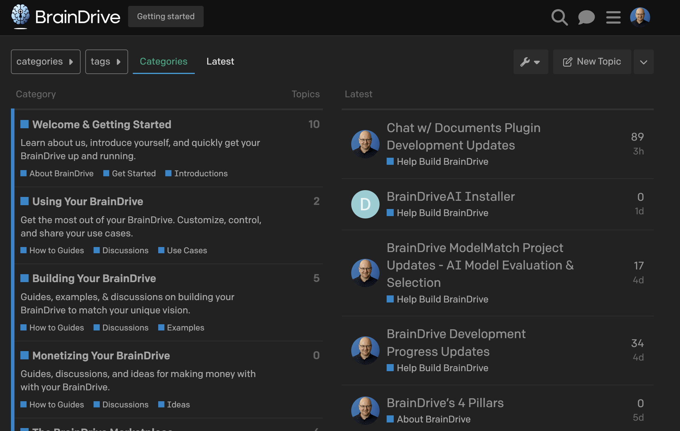 - Decentralized – Join an existing community, or create a BrainDrive focused space of your own.