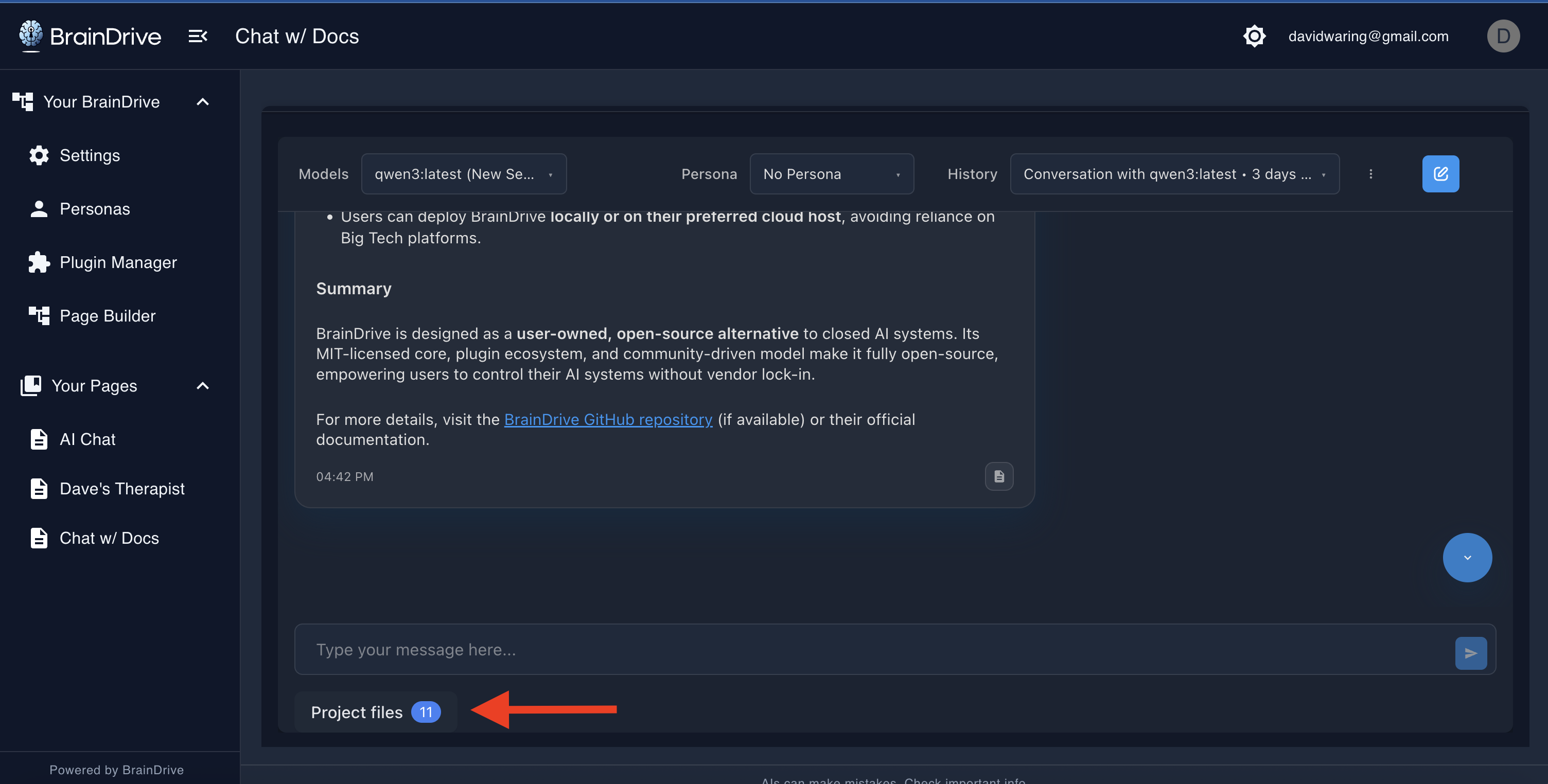Ground your BrainDrive Chat’s in the context included in those documents: