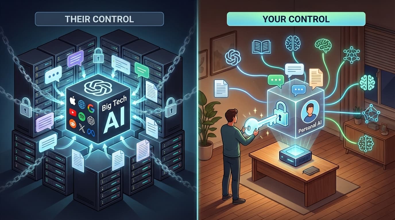 With Big Tech AI, they control ALL FIVE components. You get access, but they make every decision - what models you use, where your data goes, how the interface works, where it’s hosted, and what you can connect.